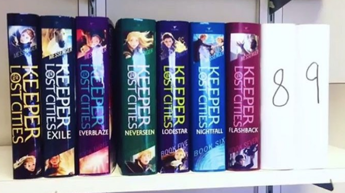 Keeper of the Lost Cities Book 10. EXILE has Sophie Keefe and Silveny. I love the colors in Everblaze and Stellarlune but I think my favorite cover goes to flashback.
